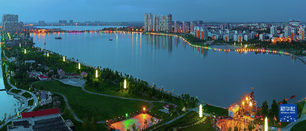 大庆市黎明湖夜景(资料照片)。新华社发(刘为强 摄)