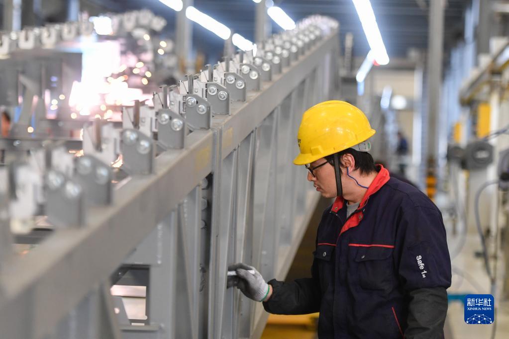 工人在位于杭州市临平区的西奥电梯数字工厂生产车间内作业(12月17日摄)。浙江省各地企业克服疫情影响,在做好疫情防控的前提下抓生产、保订单,有序开展各项工作。新华社记者 黄宗治 摄