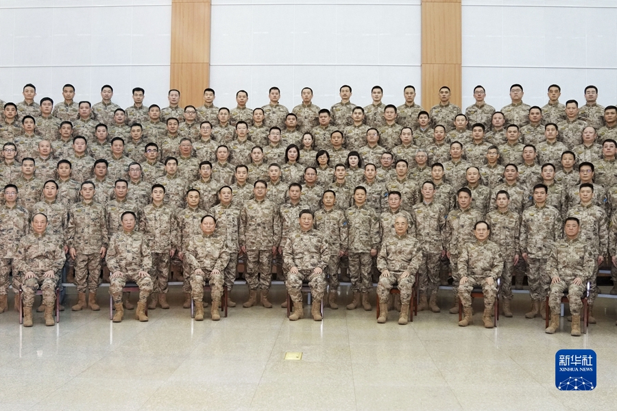 随后,习近平同中部战区海外维和分队进行视频通话。来自维和步兵营、工兵分队、医疗分队、直升机分队的同志们整齐列队,依次向习近平报告。习近平向他们,并向我军正在海外执行任务的全体官兵表示慰问。习近平强调,要忠实履行维和使命,为维护世界和平贡献更多中国力量,向世界展示中国军队良好形象。维和任务区环境复杂,要注意加强安全防范,搞好疫情防控。