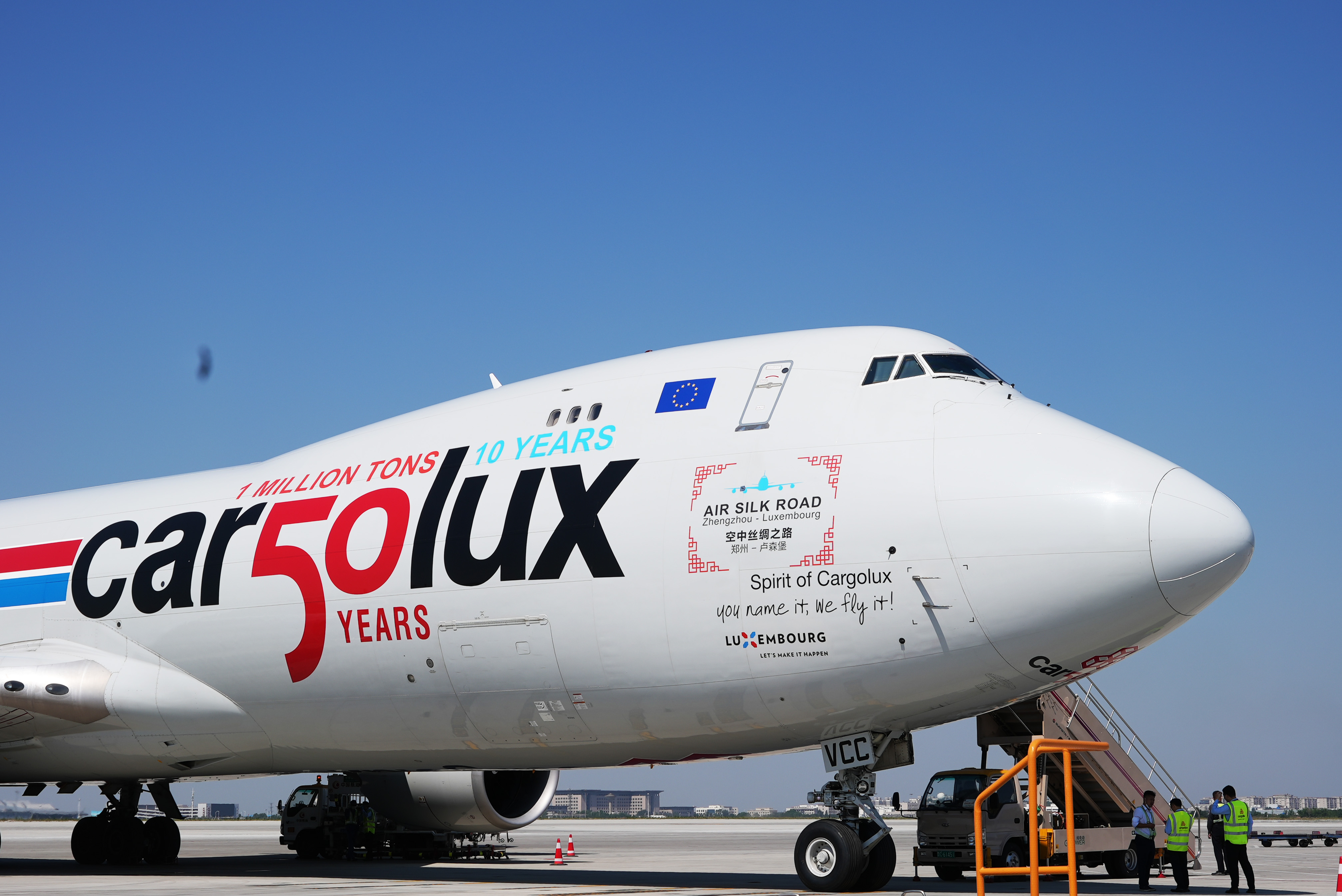 6月14日上午8时30分,一架从卢森堡起飞的B747-8F货运班机,越过千山万水,飞抵郑州机场,这是卢森堡货航“郑卢空中丝绸之路号”首次亮相,刷新了郑卢“空中丝路”货运量突破100万吨的成绩单。