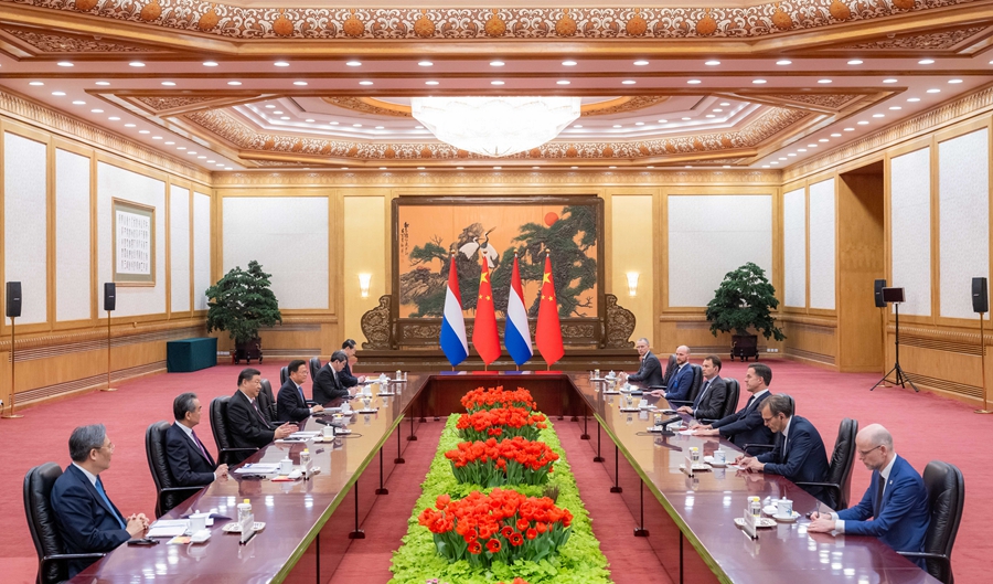 习近平指出,近年来,中荷关系稳健快速发展,两国各领域合作持续深化,荷兰已经成为名副其实的中欧合作“门户”。中方愿同荷方保持各层级交往,坚持沟通对话,坚持互利共赢,推动中荷开放务实的全面合作伙伴关系不断发展。中方愿扩大荷兰优质商品进口,欢迎荷兰企业来华投资,也希望荷方为中国企业提供公正、透明的营商环境。双方要积极推进农业、水利、能源等传统合作,同时挖掘人工智能、绿色转型、银发经济等领域合作潜力。希望双方继续采取更多便利人员往来措施,鼓励教育、文化和民间交流。中方愿同荷方加强在联合国、世界贸易组织等多边机构的沟通协调,共同应对气候变化、生物多样性等全球挑战。