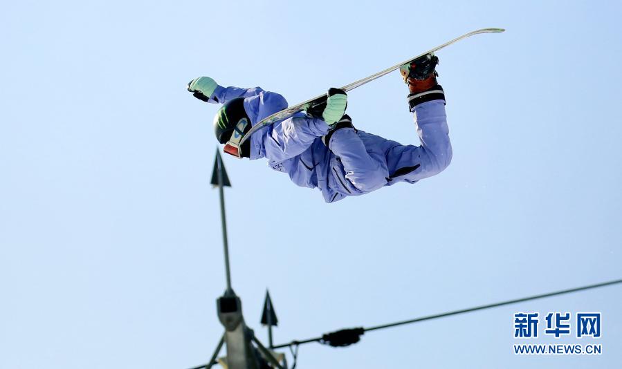 这是2020年12月10日,苏翊鸣在吉林长白山万达泰格岭地形公园进行单板滑雪大跳台项目训练。新华社发(施维 摄)