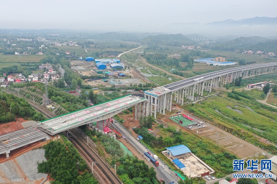 新华网郑州9月22日电(范作言)9月20上午8:30,在河南南阳渑淅高速(渑池-淅川)跨宁西铁路(南京-西安)转体桥施工现场,随着2台牵引机的轰鸣启动,重达21000吨的T构梁缓慢顺时针旋转,在历时90分钟旋转67.5°后成功转体,平稳跨越了宁西铁路和G312国道,在空中实现“华丽转身”和精准对接。