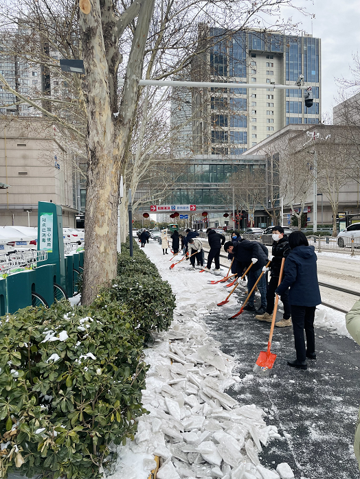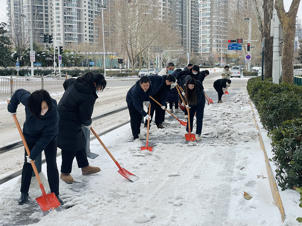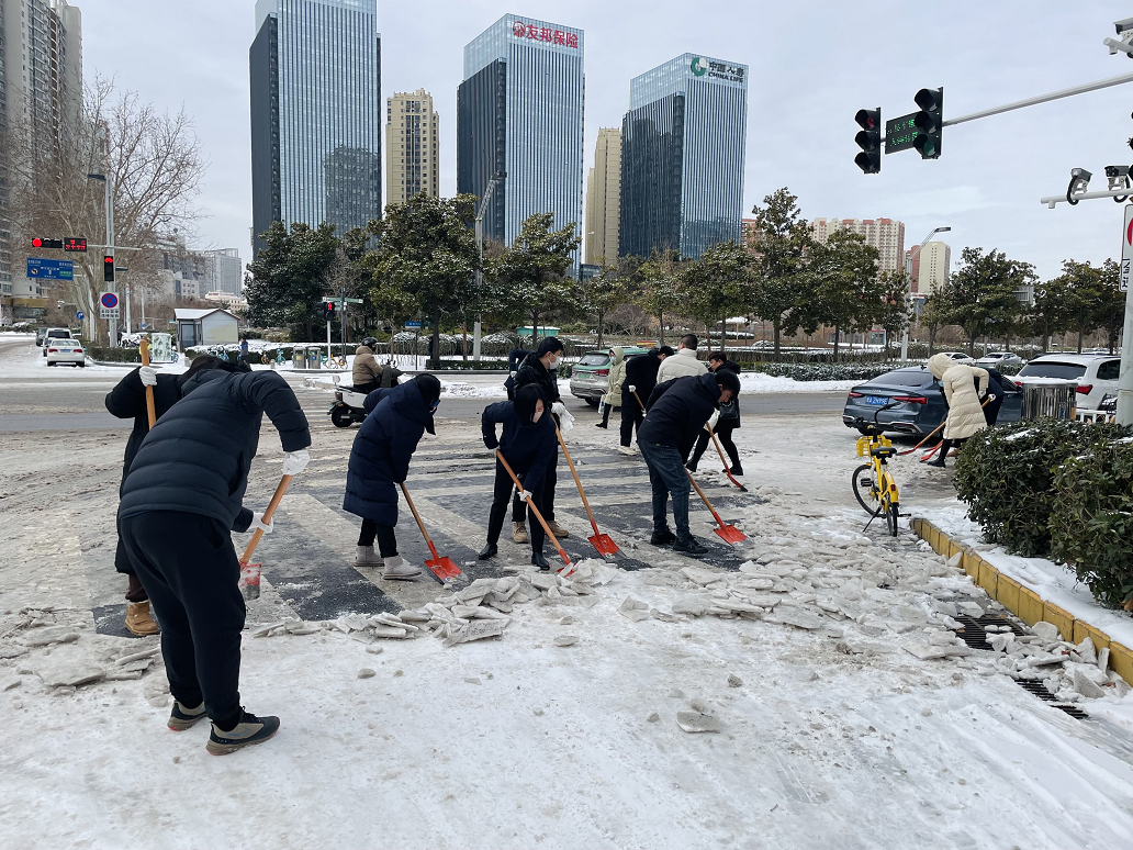 近几日,郑州先后出现冻雨、冰粒、持续性降雪的复杂雨雪相态,气温骤降,道路出现先结冰后积雪现象,给市民生活、出行带来极大不便。2月22日,中共河南省中豫工程咨询集团有限公司第四支部、18luck全站客户端积极响应郑州市文明办发出的最新倡议,发挥党支部先锋堡垒作用,践行国有企业为民服务社会责任,组织公司党员、职工开展“清雪除冰志愿服务活动”,深入街道清雪一线,助力清雪除冰工作,用实际行动为民服务,为保障群众出行安全贡献力量。